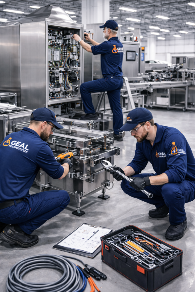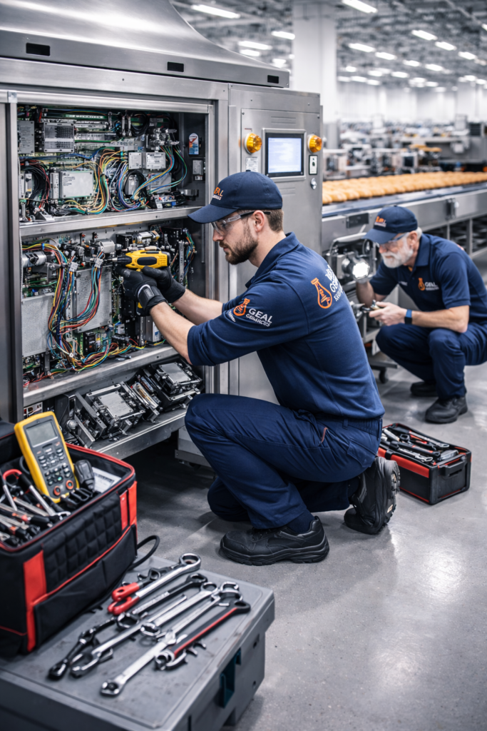 Realizamos la instalación completa de maquinaria y equipos de panadería, garantizando una correcta puesta en marcha y el cumplimiento de los estándares técnicos y de seguridad. Nuestro servicio incluye el montaje y alineación precisa de los equipos, la nivelación adecuada para un funcionamiento estable, así como la ejecución de conexiones eléctricas, hidráulicas y neumáticas conforme a las especificaciones del fabricante. Además, llevamos a cabo pruebas operativas y ajustes finales, verificando el rendimiento, la seguridad y la eficiencia de cada máquina, con el objetivo de asegurar un funcionamiento óptimo desde el primer día de operación y minimizar riesgos o tiempos de inactividad.
